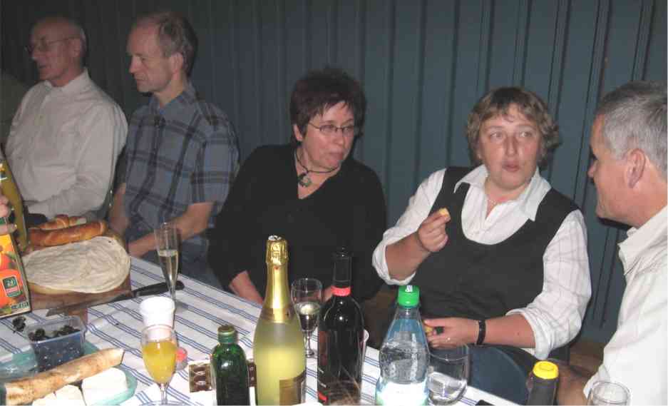 Gerne kamen wir einem sehr typisch bremischen Brauch nach, dem Stühlerücken. Ein Tanzpaar ist umgezogen. Sie haben in der letzten Zeit viel renoviert und viel geschafft. Nun warteten sie eigentlich nur noch auf uns - und wir kamen. Fast der ganze TCBS konnte diesen Abend da sein. Jeder brachte etwas mit und so war der Tisch schnell mit allerlei Köstlichkeiten gedeckt. Dann wurde kräftig gegessen, getrunken und miteinander gesprochen.